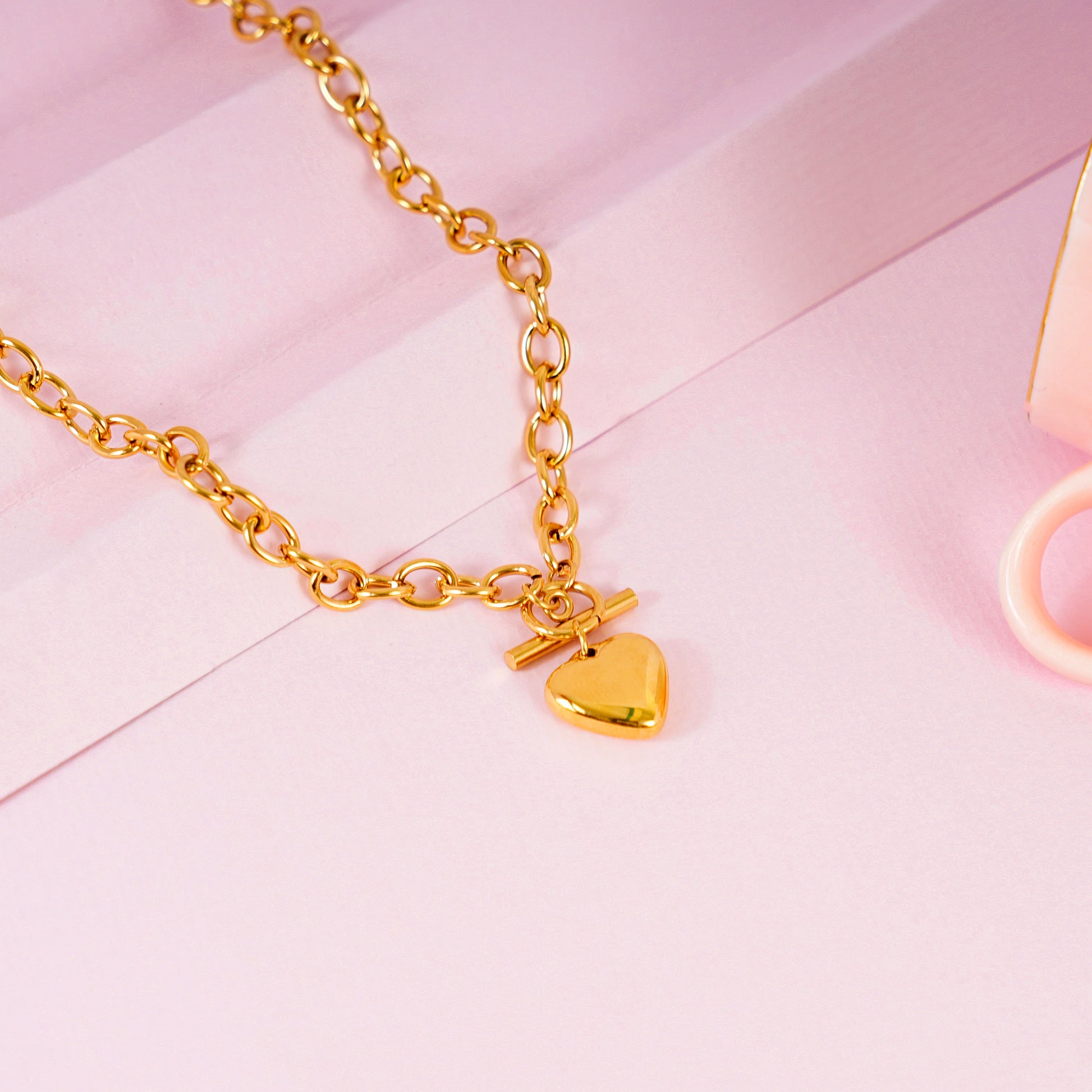 18K Gold Plated Buckle Up Chunky Gold Heart Necklace