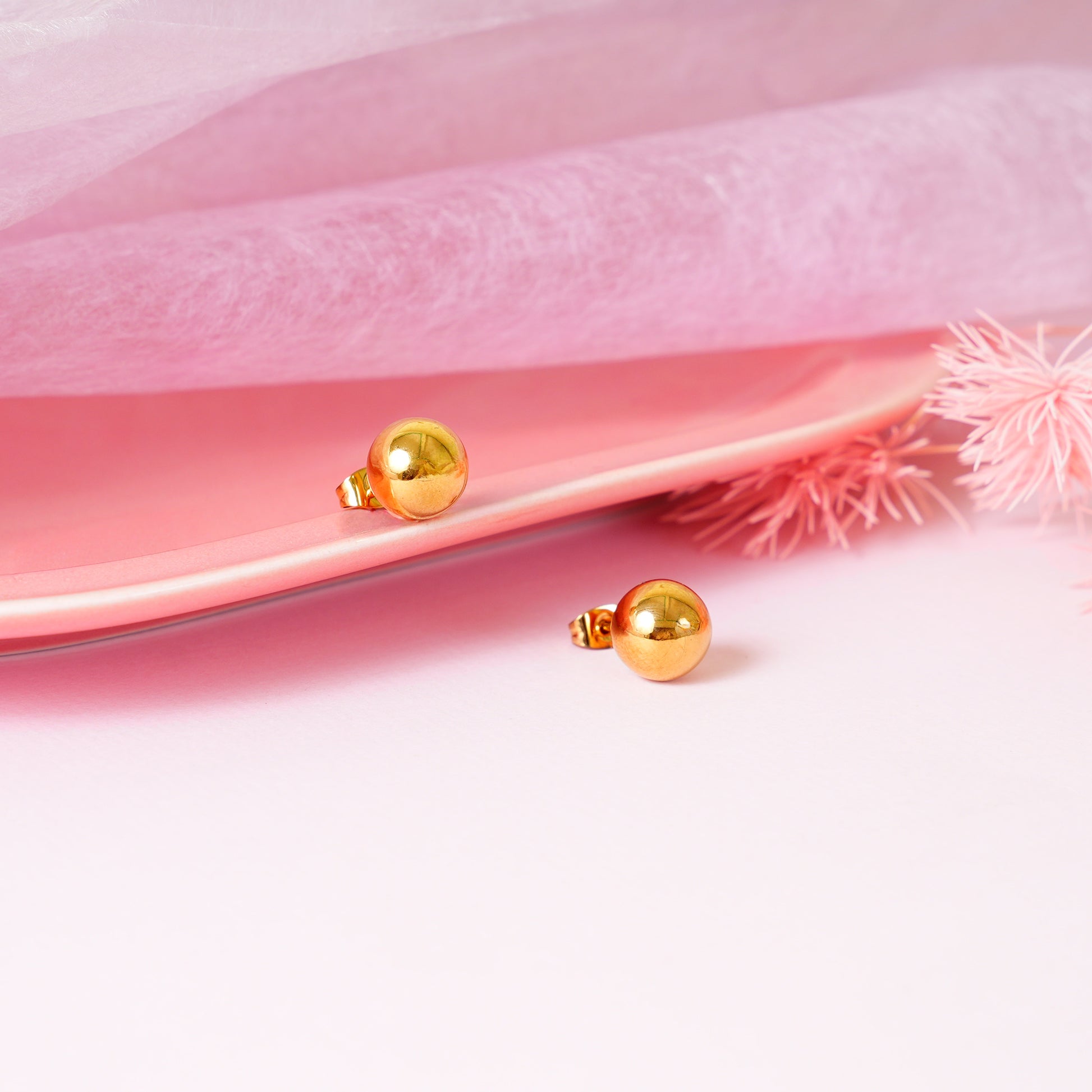 18K Gold Plated Golden Glow Ball Stud Earrings