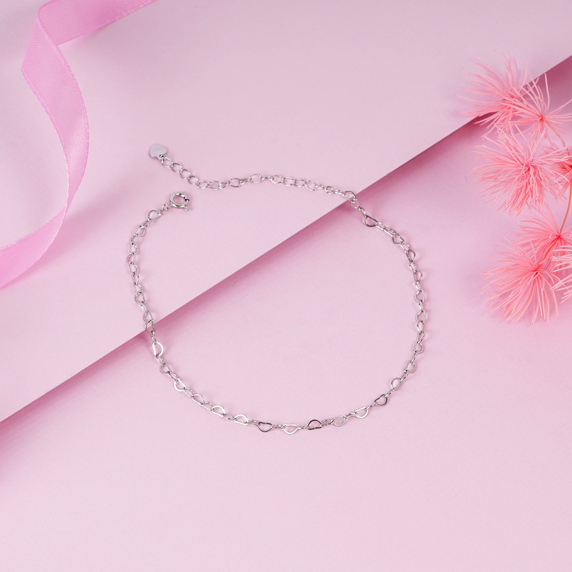 925 Sterling Silver Heart Link Chain Anklet