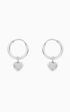 Small silver hoops with dangling hearts